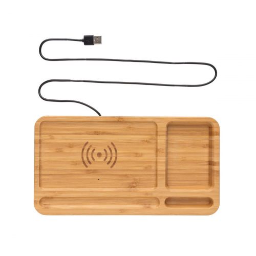 - Stolni organizator od bambusa s wireless punjačem, uz proizvod dolazi USB kabal (150 cm), bežično punjenje 5 W